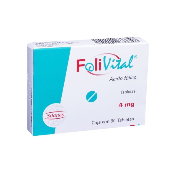 Ácido Fólico 4 mg Caja con 90 tabletas