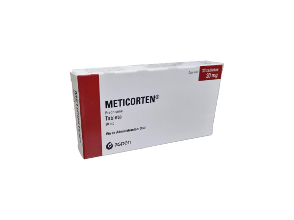 Prednisona Tableta 20 mg. Caja con 30 tabletas